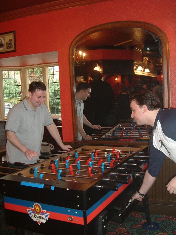 Down in the bar was table football. Bad move. A buncha classic gaming freaks had congregated on a Yakfest and what did they play? Table football.