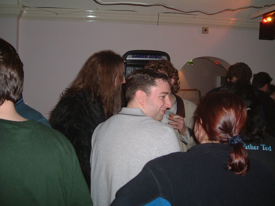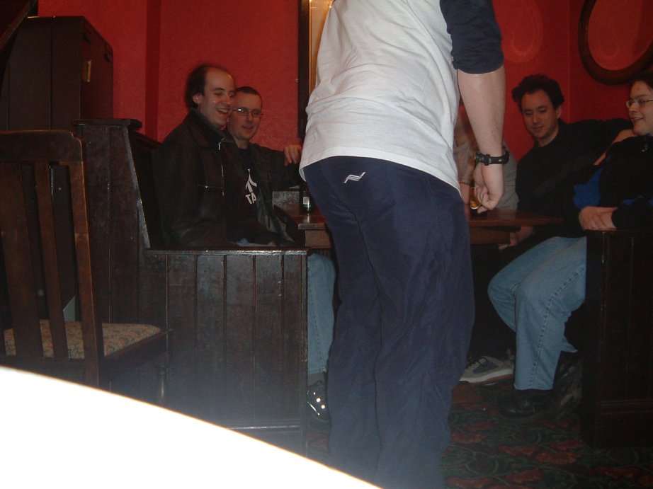 A call to the local taxi rank ruled out the possibility of a people-carrier cab, so we plumped for two taxis instead. Another group at the hotel rang shortly after us to be told huffily that they'd already ordered taxis which were on the way; we feared the confusion may result in ours being cancelled but finally, two taxis showed up, seemingly from different companies, manned by two drivers that didn't seem to know each other, and both drivers not initially knowing where we were headed. What the hell is it with taxis? Anyway, ours followed the one that knew the way, the leading cabbie giving a running commentry on the sights and sounds of Oxford, taking great pains to point out the Gay nightclub to Rossy. We're still unsure why.