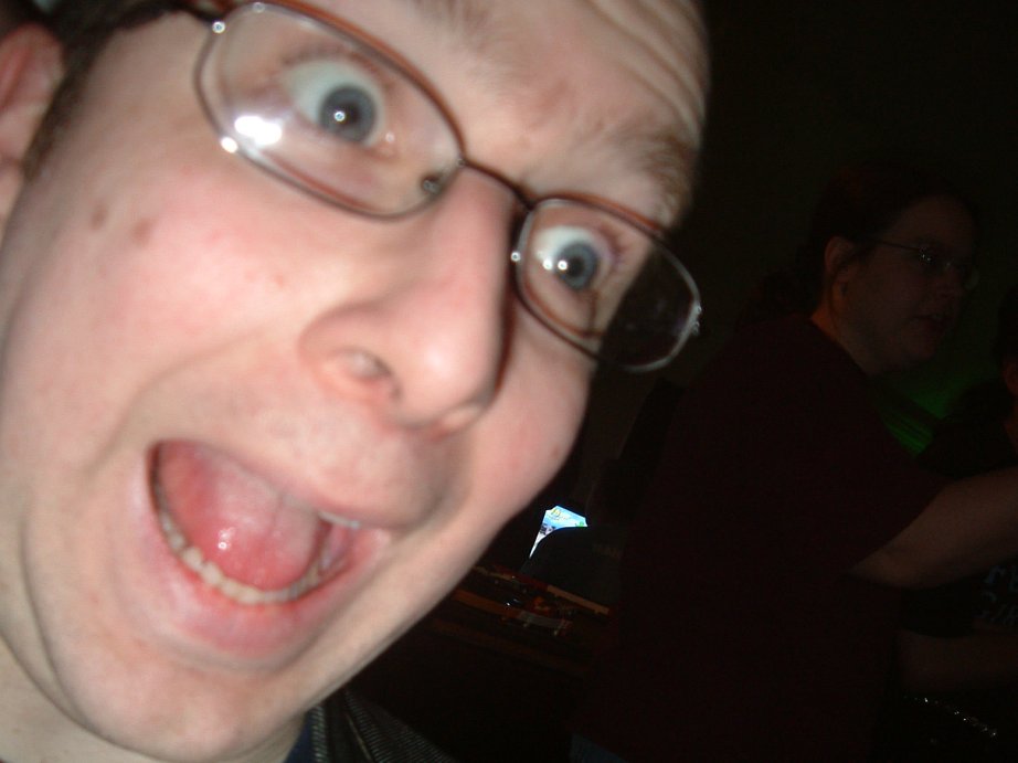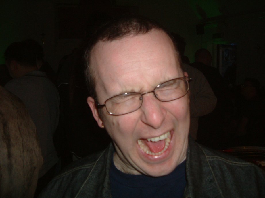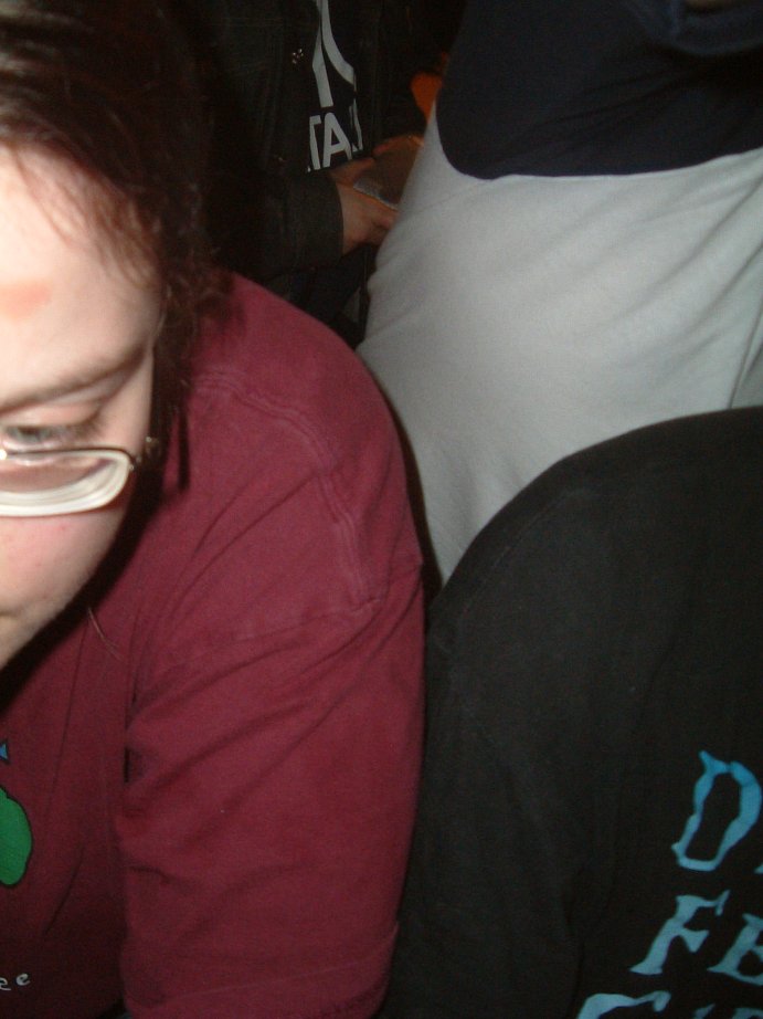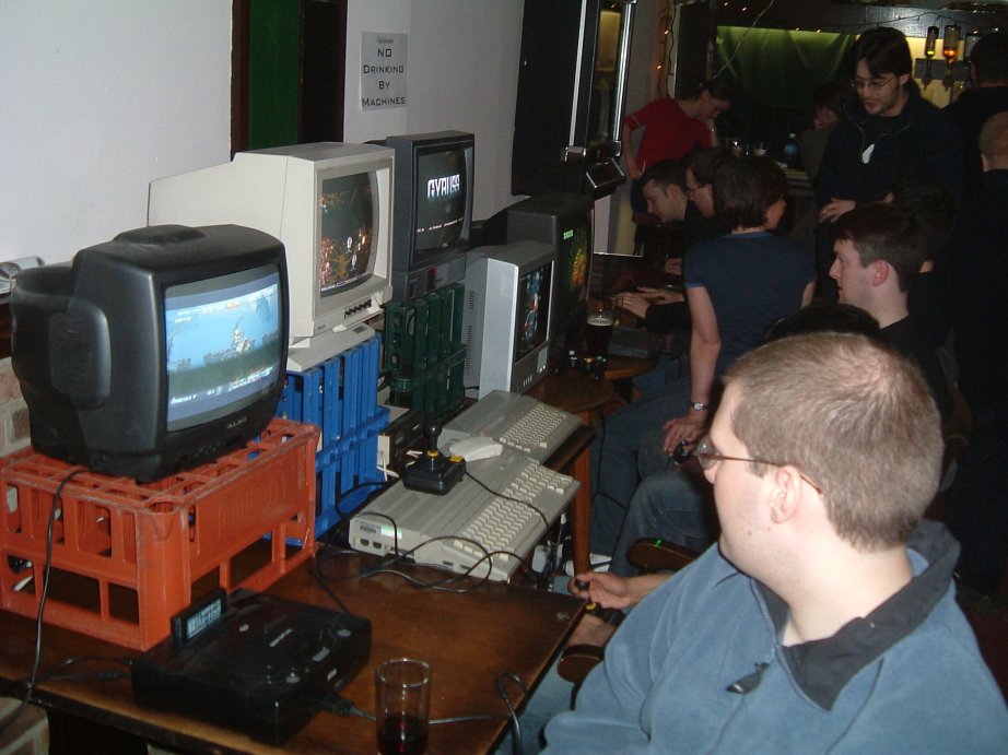 The room was filling up, so we headed back downstairs for a respite from the flashing lights and chaotic sounds, plus a brief bite to eat whereby we discovered that Rocky dislikes tomatoes but wishes that he didn't, as they look so plump and welcoming, and LANs views any foodstuff green as evil. Also Hatrik adores toast, which Rocky views as a good substitute for chips. But more on that later.