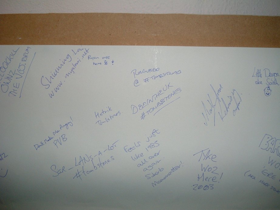 Sir_LANs (he of the DNS table - don't forget to bow to the Good Knight) and Dungeon Dave made it there a little later, travelling in from the Midlands, and joined the others for a coffee; at which point Mark Ross called in claiming that he'd lost his car at a filling station. Eventually he got his act together and appeared on the scene shortly after lunch, whereby we booked in and found that we could drop off our luggage.