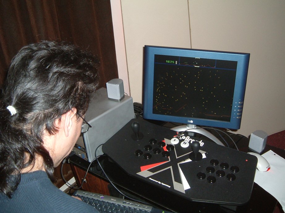 I was surprised to see someone playing Missile Command on the MAME cabinet and discovered too late that it had interchangable control panels, which was a pity as I'd have liked to spun some other games on the upright cab. Rocky was glad that he'd recorded the hi-score table, and showed everyone the show just to ensure we'd seen it.