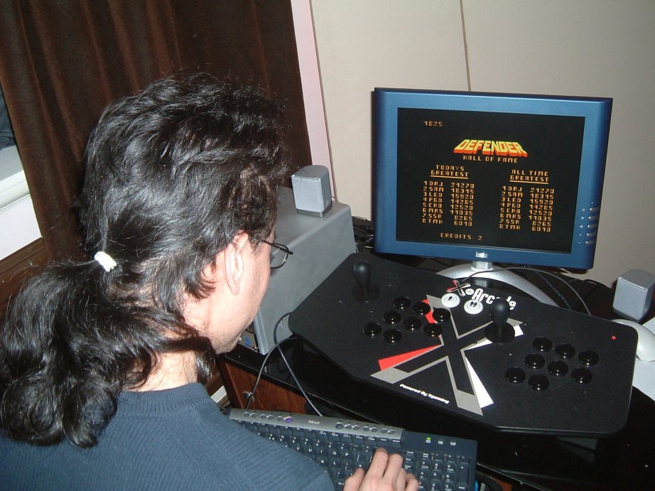 The cabs were getting crowded, so we moved to the back wall with Rossy taking to Karate Champ while Hatrik and I played a couple of shoot-em-ups on the MAME PC in the corner. I spotted a small box the size of a 4-pack sitting on the floor: a subwoofer! I cranked up the volume and searched for a noisy game to play, settling - both ironically and childishly - on RoboTron. Stomping! The deep bass thuds rattled the floor; I could feel them through my chair. Although I'm not that good at the game, Hatrick said I'd attracted an audience but they were probably curious to the source of the sounds.