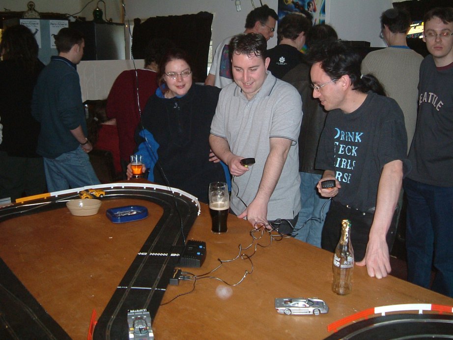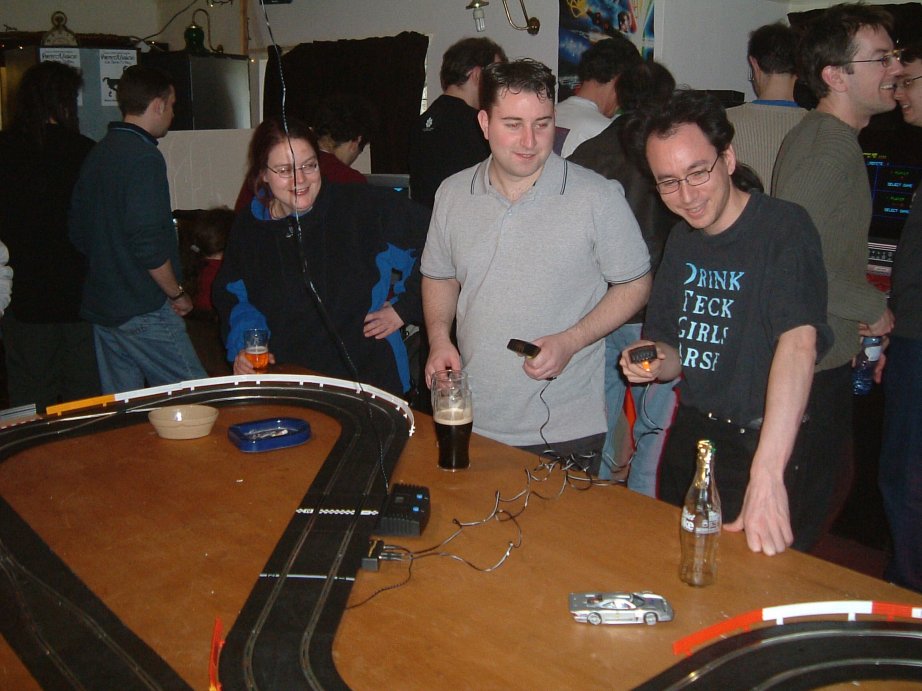 The room wasn't *that* large and was somewhat dominated by a Scaletrix table in the centre, being jostled at regular intervals by onlookers which providing an additional challenge to the racing circuits.