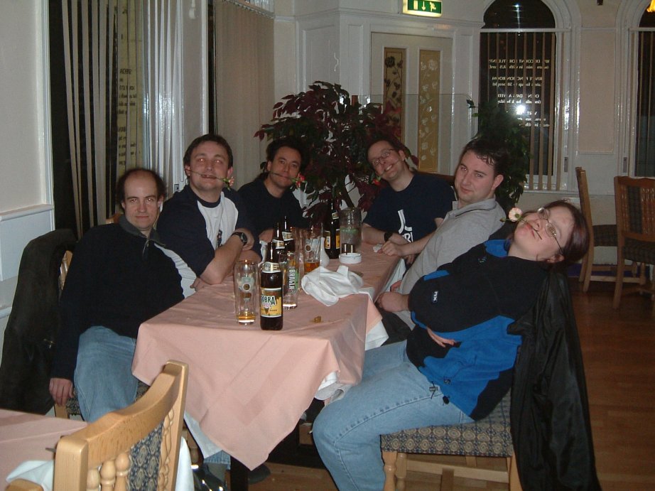 After a few group shots, we managed to book a taxi from the Curry House that got us home quicker and cheaper than the original trips out (what the hell IS it with taxis?) whereby the discussions drifted into the early morning, touching subjects such as the games we played today, our opinions on the Yak's stuff and Rocky's "Track And Field" scores, lest we forgot!
